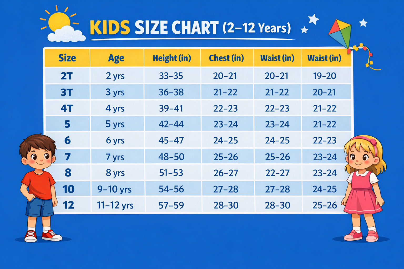👶 KIDS SIZE CHART (2–12 Years)