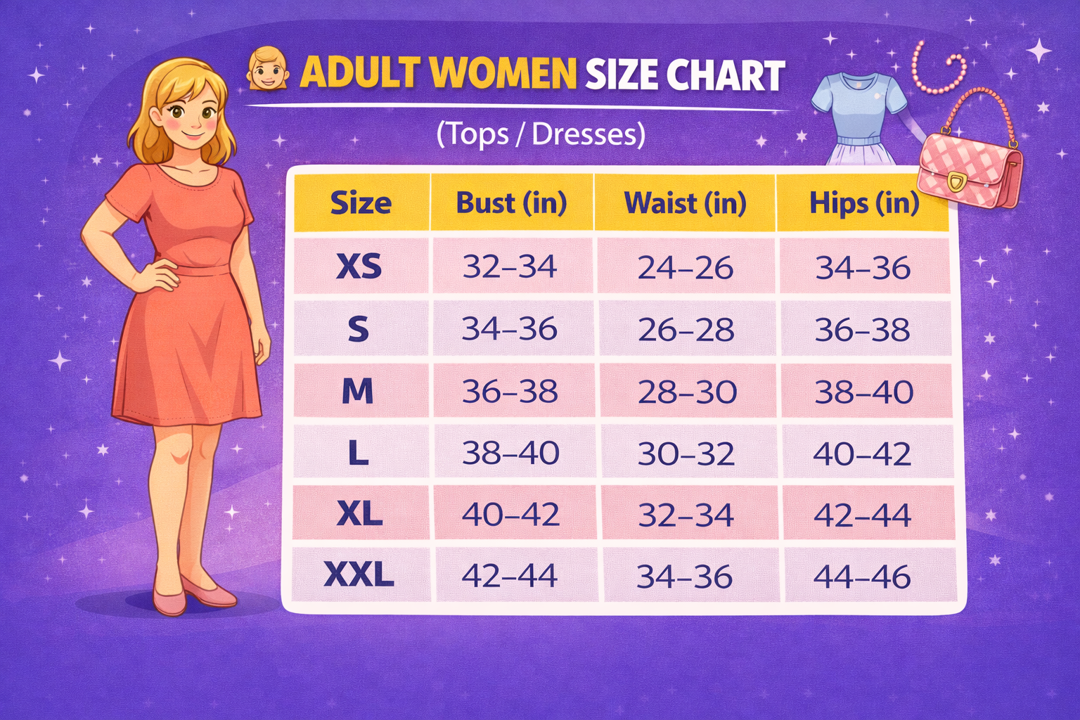 👩 ADULT WOMEN SIZE CHART (Tops / Dresses)