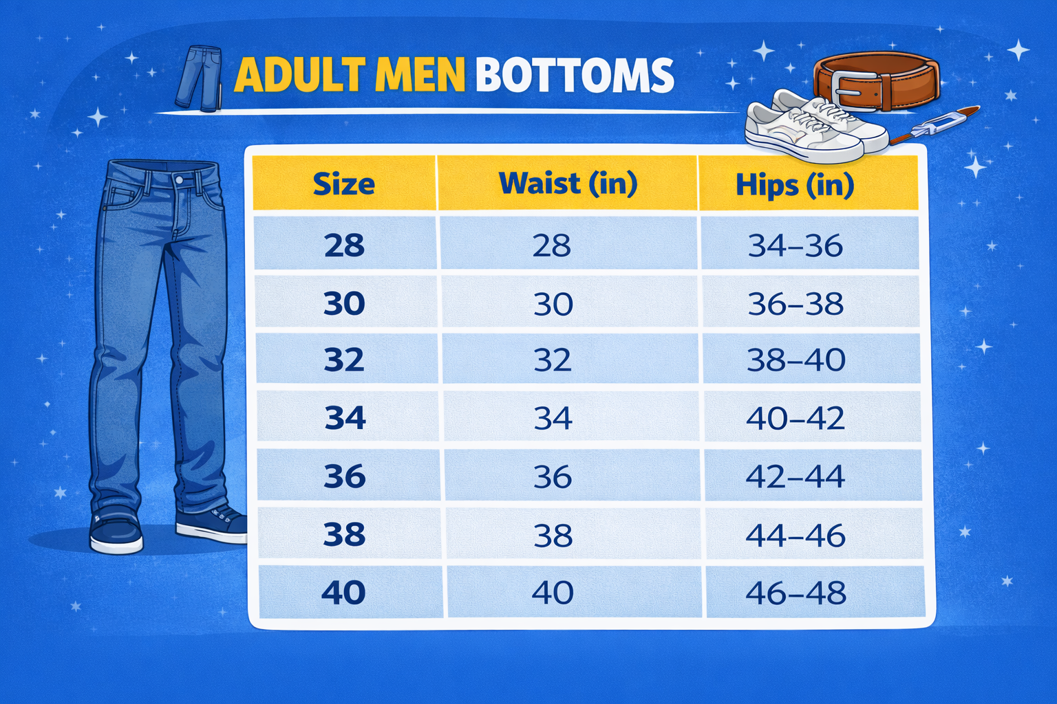 👨 ADULT MEN SIZE CHART (T-Shirts / Shirts)